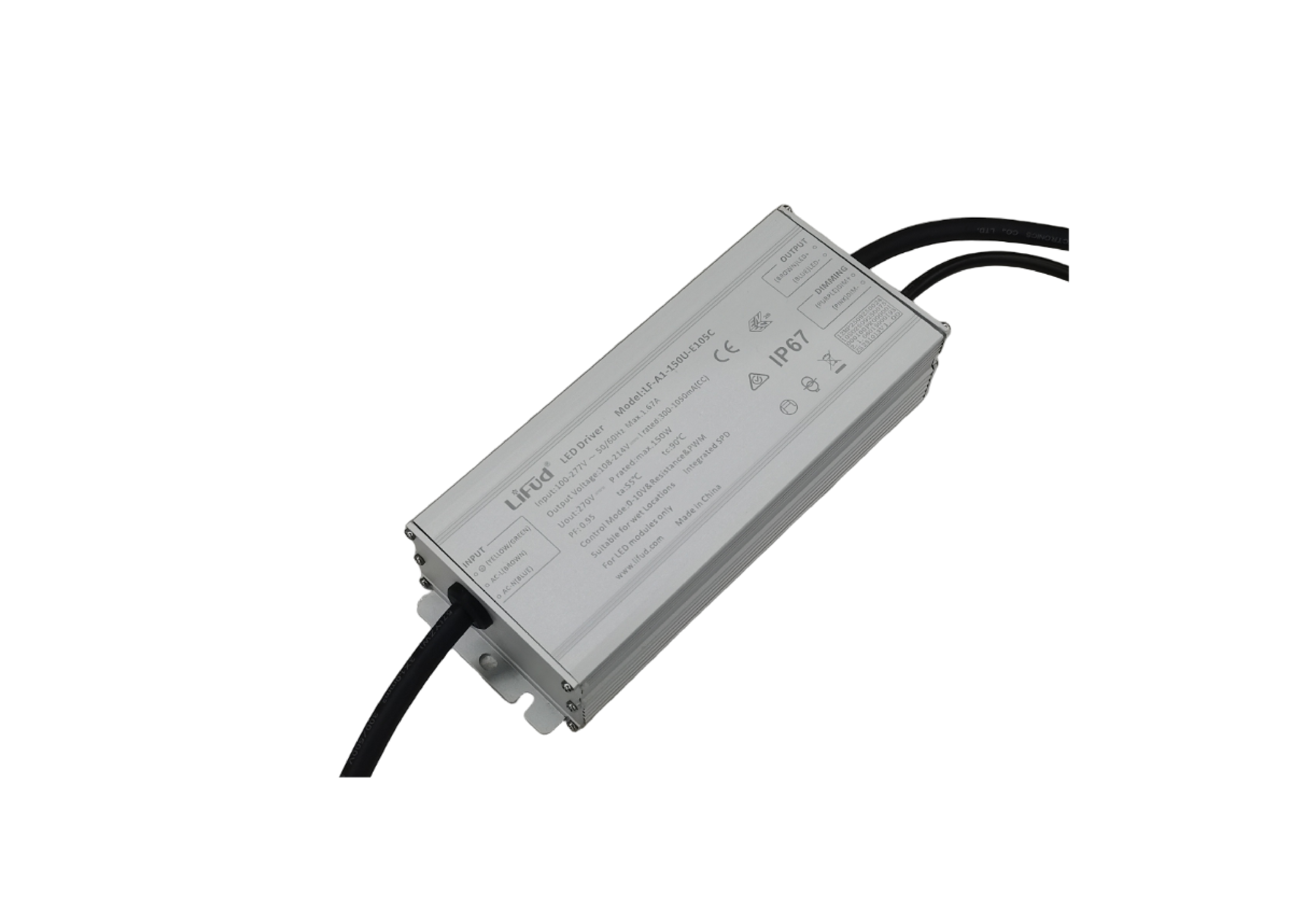 4、防雷等级:L-N 6kV, L/N-GND 10kV(75~240W);L-N 4kV, L/N-GND 6kV(40/60W)